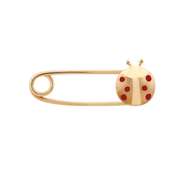 Alfinete Joaninha em Ouro 18k com esmaltação vermelha.