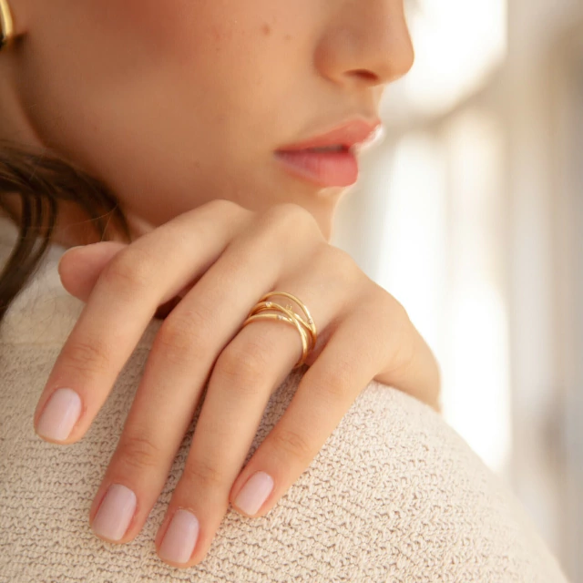 Anel Ouro 18K Fios com Brilhantes Médio.