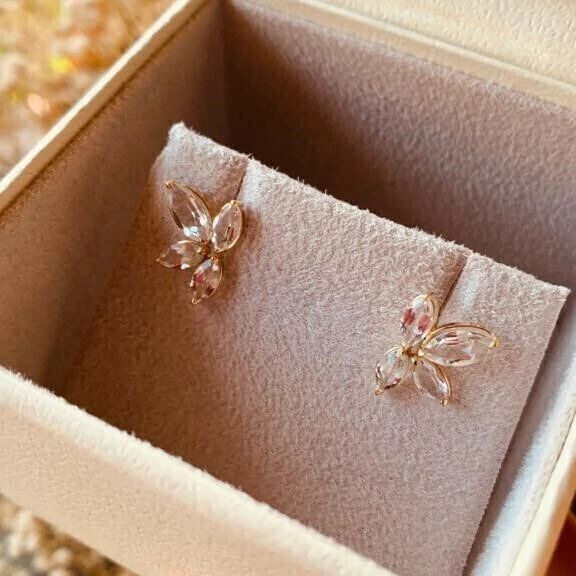 Par de Brincos com Topázio Branco Natural, possui tarraxa de pressão e é produzido em ouro 18k.