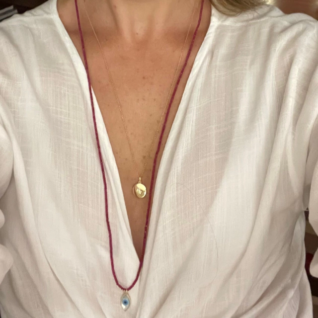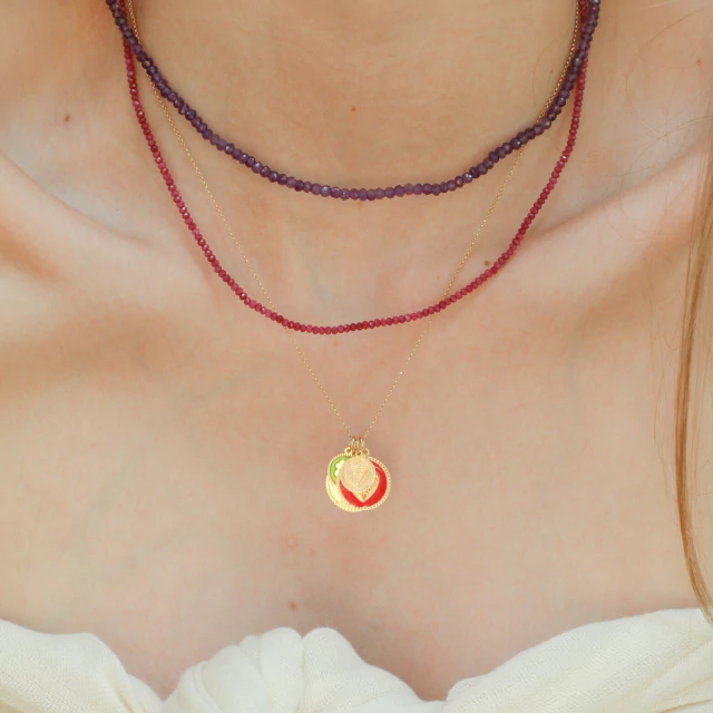 Colar com amarração e pedras em dolomita vermelha, com fecho em ouro 18k.