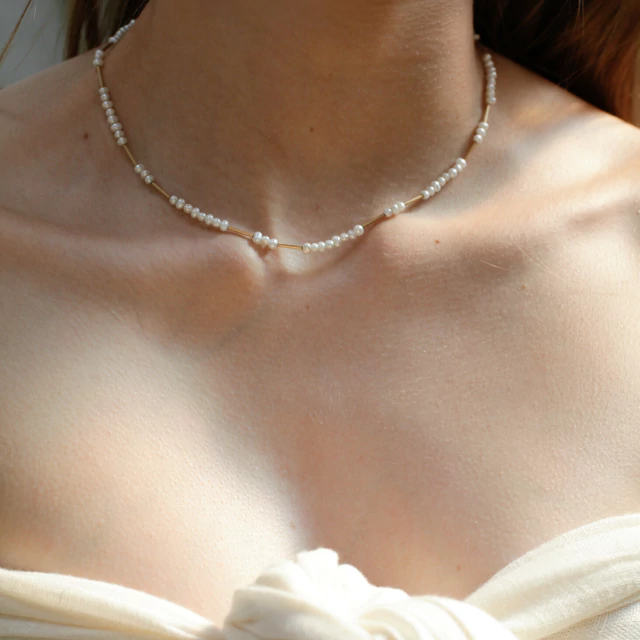 Gargantilha Ouro 18k com Pérolas Irregulares Intercaladas 45cm