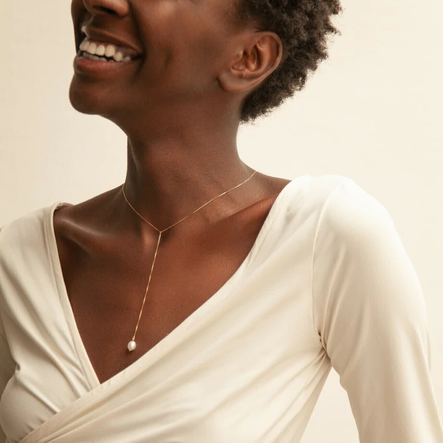 Gargantilha Ouro 18K Gravata Pérola Biwa.