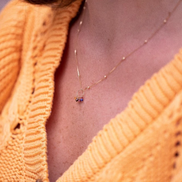 Pingente com amarração e Pedras Coloridas Naturais Briolets de 2mm em ouro 18k é uma ótima sugestão de presente.