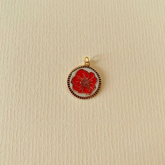 Pingente Ouro 18k Flor Papoula Com Borda
