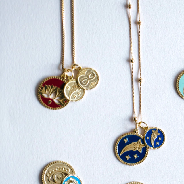 Pingentes alegres e cheios de significados, com um desejo de leveza por tudo o que está por vir.🌿 Escolha entre as opções sem e com esmalte, e traga ainda brilho e colorido à sua vida.