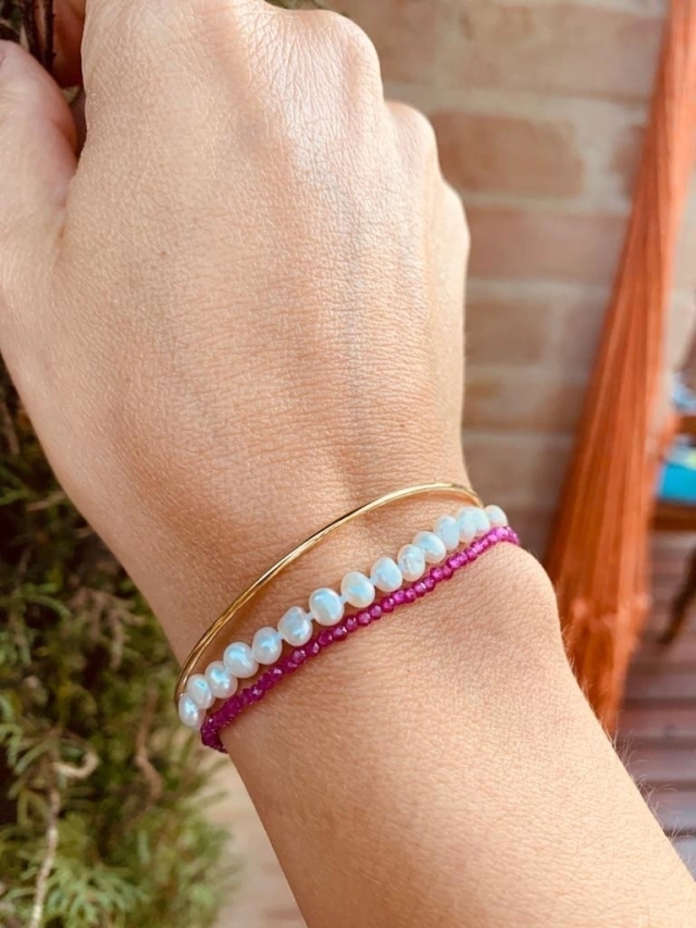 Pulseira com amarração e pedras em Corindon Rosa com fecho em ouro 18k é uma ótima sugestão de presente.
