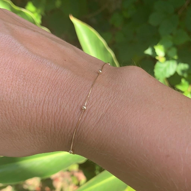 Pulseira Ouro 18k Veneziana com Bolinha 2mm - 18cm, com argola adicional no 16o. cm.